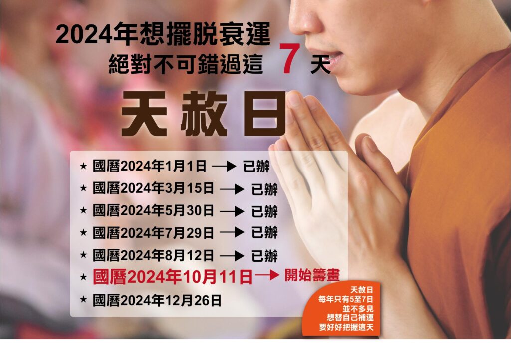 天赦日這天,也可請求上天赦免我們不小心犯了一些凶神惡煞,請上天給我們一個機會祈求赦免。