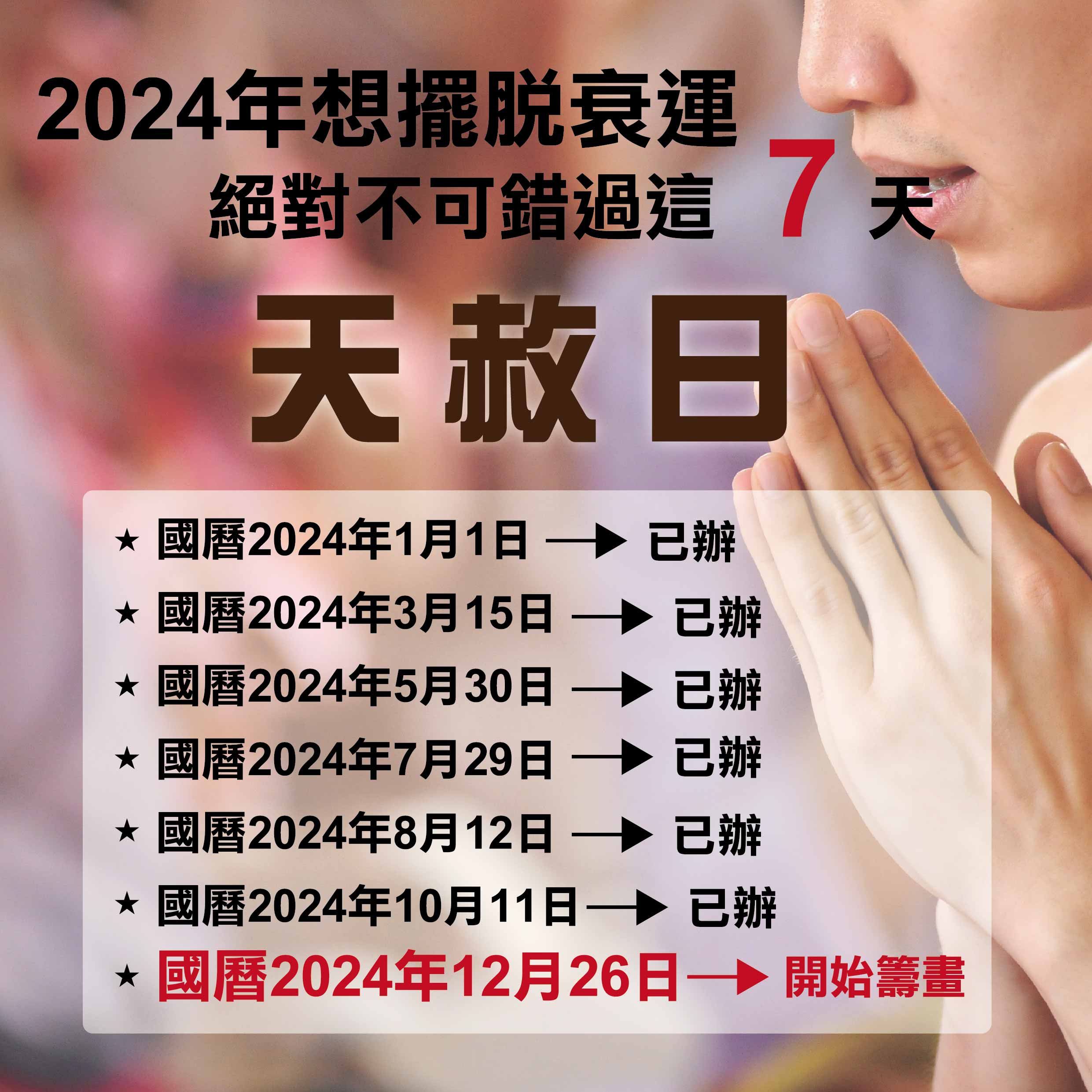 法會時間:2024/12/26,敬請提前報名。