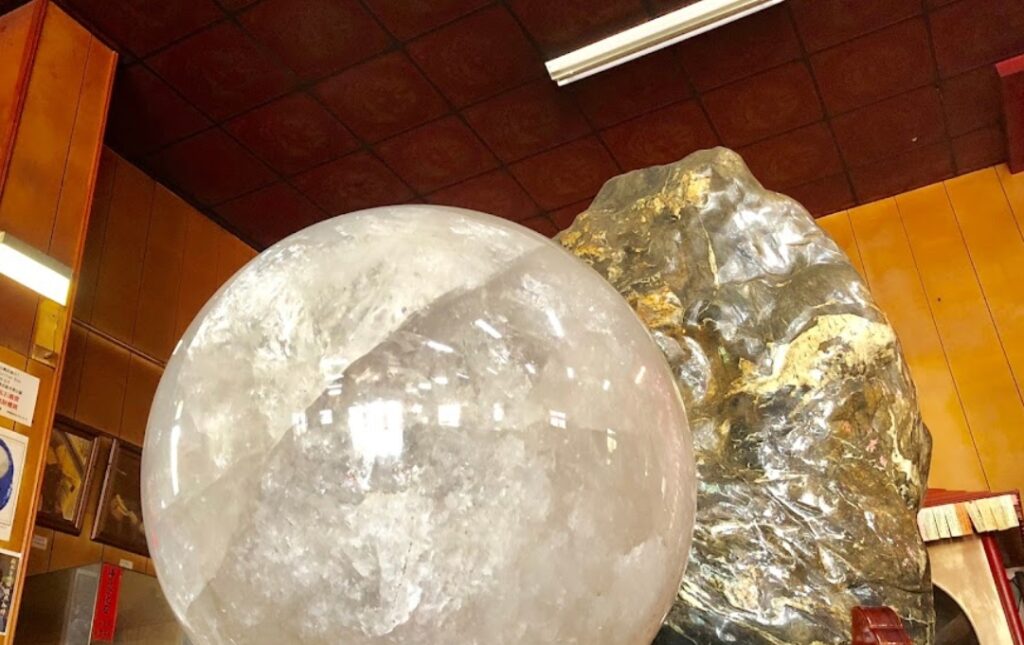 圖為超大水晶球,將雙手放在水晶球上,閉上眼睛感受能量。