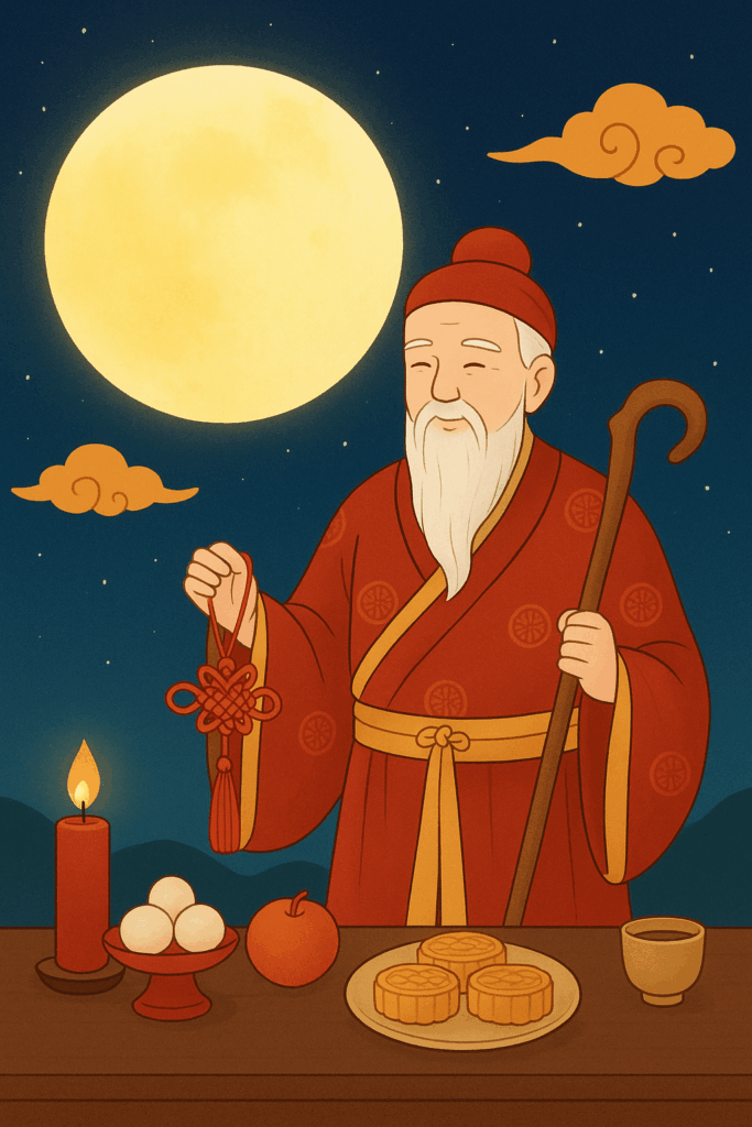 月下老人,又稱月老,源自中國古代神話傳說,是主管婚姻、牽紅線的神祇。據說,月老手中的紅線能夠將有緣人緊密相連,無論生生世世都難以分離。拜月老成為求姻緣的民間信仰,尤其是在中秋團圓的日子裡,象徵著圓滿與幸福的愛情。